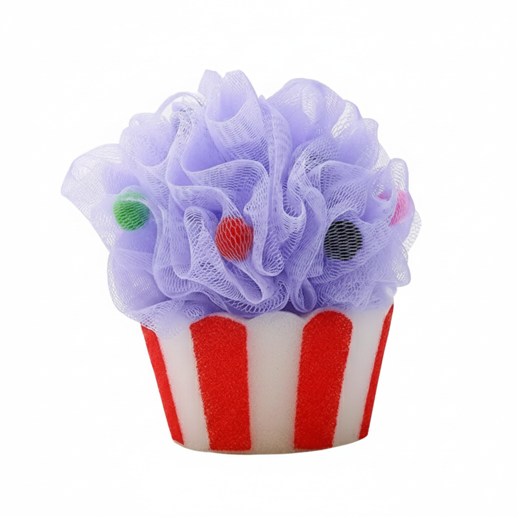 Indulge in the sweet sensation of our cupcake dream bath sponge, a charming addition to your bath essentials that combines playful style with practical skincare benefits.