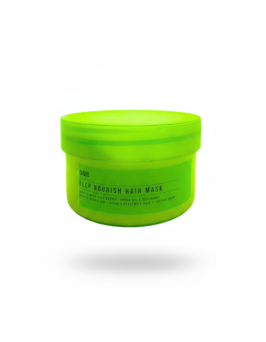 Give your hair a fresh start with our Deep Nourish Hair Mask. This weekly treatment is made to deeply condition and revive all hair types. It has a rich mix of Shea Butter, Argan Oil, and Ceramides. This mask adds moisture, strengthens weak strands, and seals in shine for healthier-looking hair.