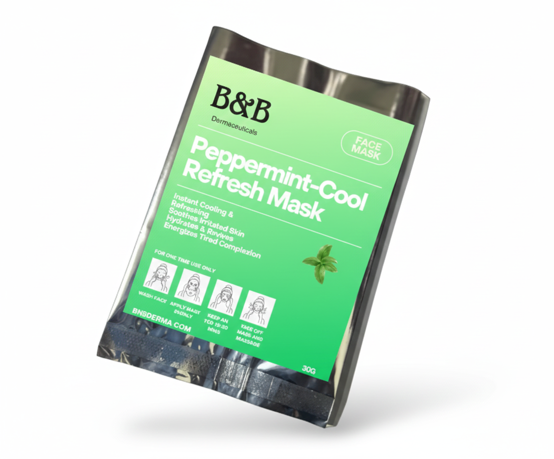 Welcome to BNB Derma, your trusted destination for 100% authentic skincare in Pakistan. We proudly present the Peppermint-Cool Refresh Mask—a dermatologist-tested sheet mask designed to instantly refresh, hydrate, and soothe your skin with a spa-like cooling sensation.
